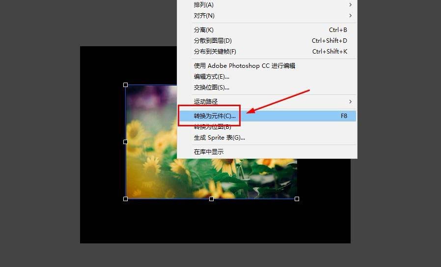 4、選擇圖片,右鍵轉換為元件
