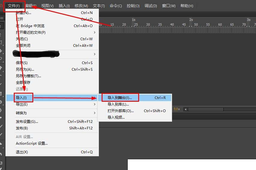 2、依次選擇文件--導入--導入到舞臺,把選擇的圖片放到舞臺上