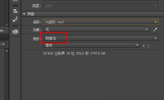 5、注意在聲音屬性中選擇同步選項為數據流,這樣聲音才會以幀為準進行播放,繼續延長幀直到沒有波形圖。
