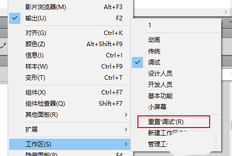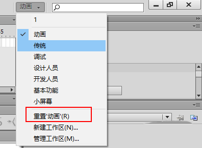 2、使用在右上角的切換工作區,或者重置工作區也可以迅速的將所需要的面板找到。