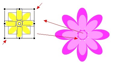 6、選擇所有圖形,按ALT鍵同時用鼠標將其向一邊移動復制出一個然后調整其顏色,并將復制的圖形適當縮小。