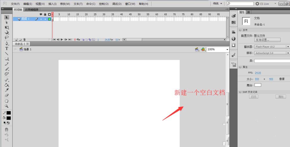 1、打開并啟動flash二維動畫軟件,選擇文件中的新建命令,來創建一個新的flash文檔。