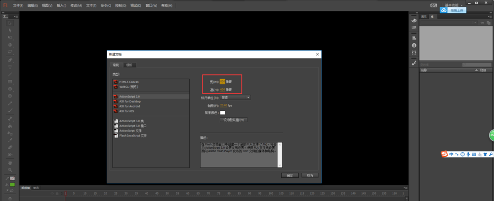 1、找到我們電腦上安裝的flash軟件并打開,選擇新建一個場景動畫,場景的舞臺大小設置為800*600像素。