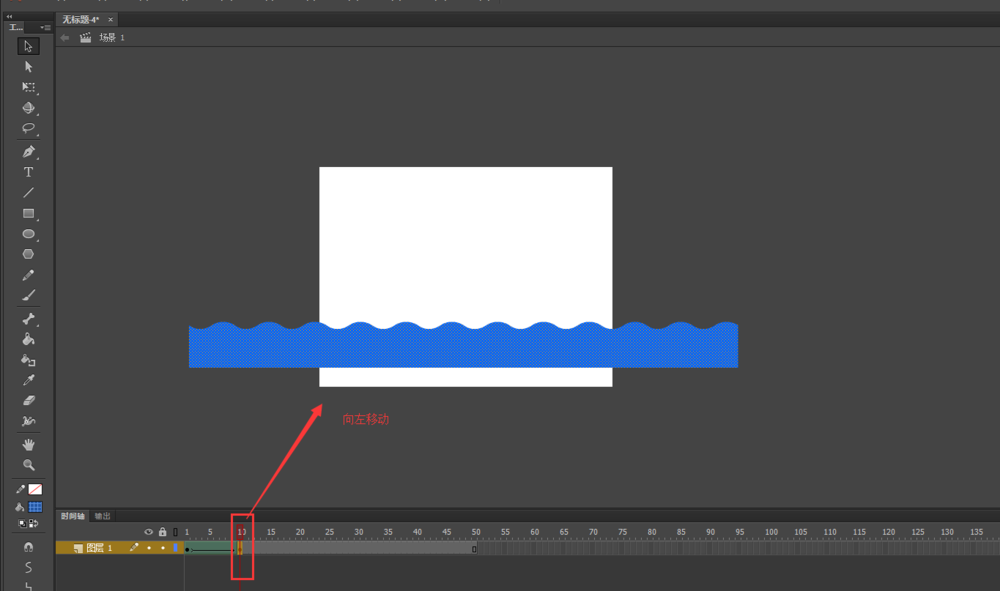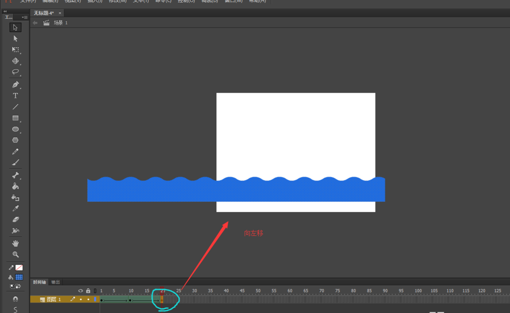 8、將鼠標定位到第20幀,依然將所有矩形整體向左移動一定的距離。測試動畫,一個像海水流動的動畫效果制作完成了。