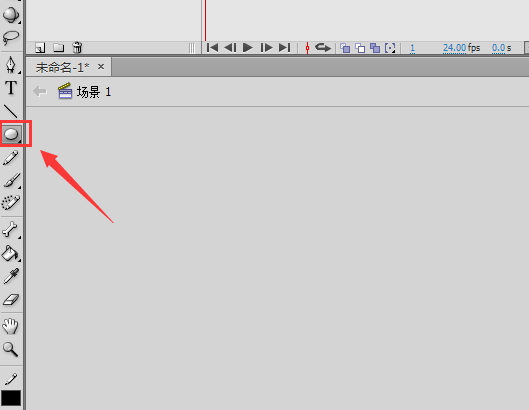 2、打開flash之后在工具箱內找到橢圓形工具,如圖所示: