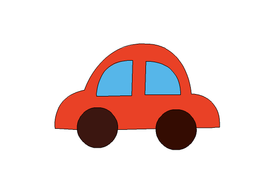 8、然后依次設置填充色為紅色和棕色,在使用顏料桶工具將車身填充為紅色,將車輪填充為棕色,這樣我們的小汽車就畫好了,如圖所示:
