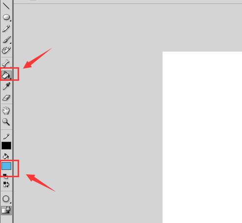 6、再在工具箱內找到顏料桶工具,并設置填充色為藍色,如圖所示: