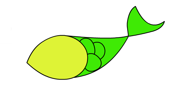 12、尾巴后面也加直線變成彎曲的樣子。這樣魚就畫好了。
