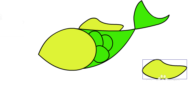 9、再畫一個圖中的形狀作為魚的翅膀。復制一個 ,讓翅膀變成兩個。