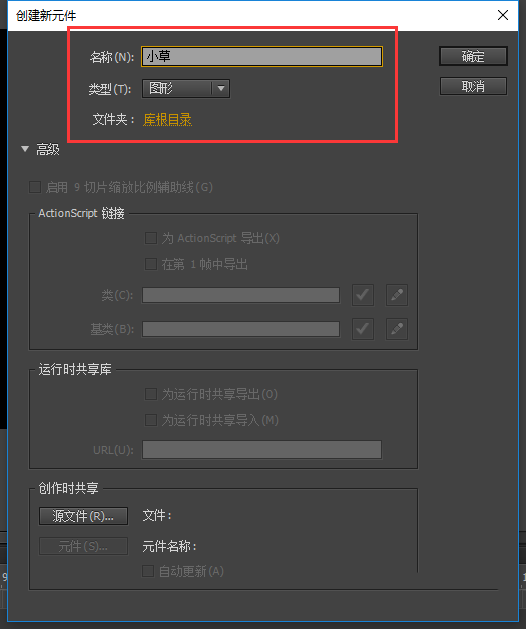 3、在插入菜單中找到新建元件命令,新建一個命令為“小草”的圖形元件。單擊確定進行創建。