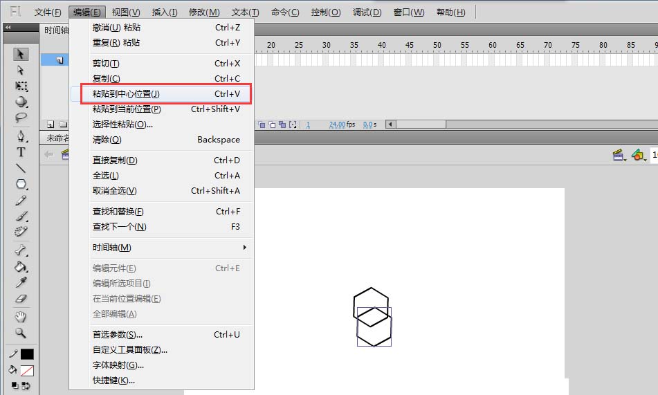 3、將繪制的正六邊形選擇編輯/復(fù)制命令,然后在選擇編輯/粘貼到中心位置,復(fù)制出一個(gè)新的正六邊形。