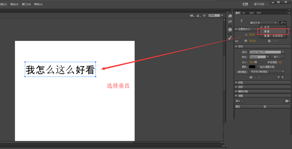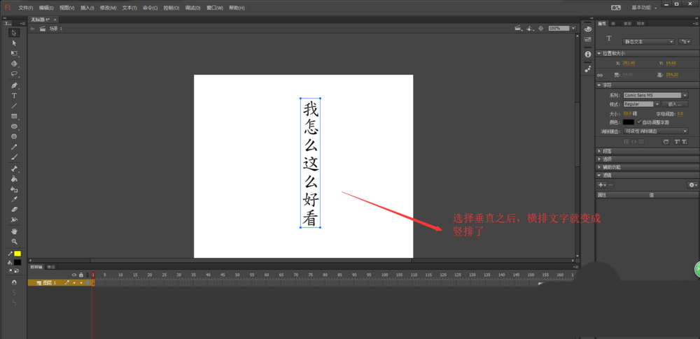 flash中想要插入數(shù)排文字,但是我們必須通過先輸入橫排文字,然后在將橫排文字轉(zhuǎn)換為豎排文字,該怎么講橫排文字變成豎排文字呢?下面我們就來看看詳細的教程。