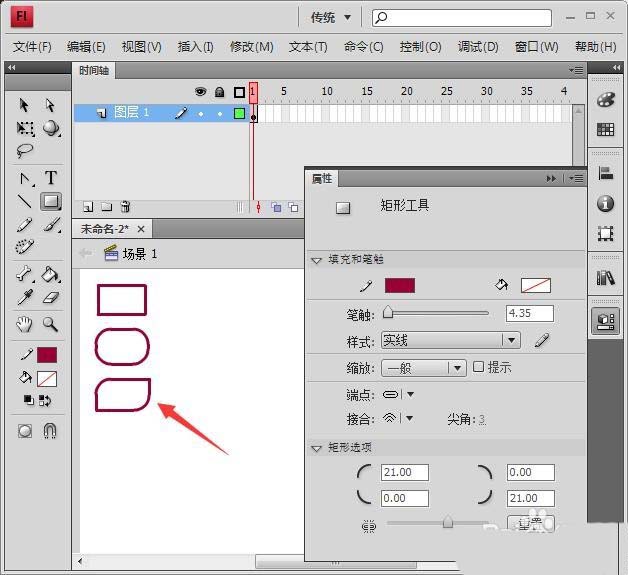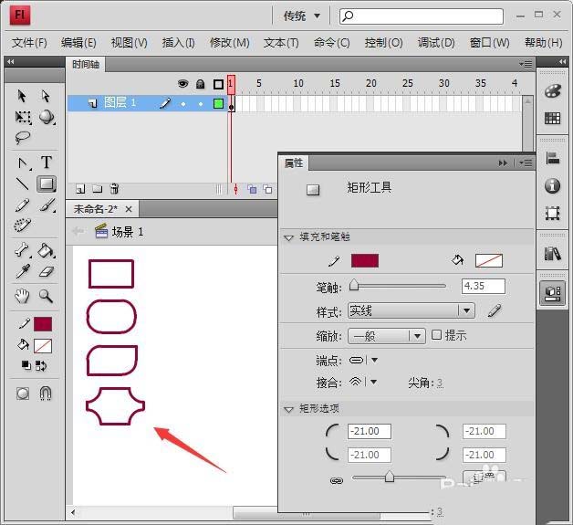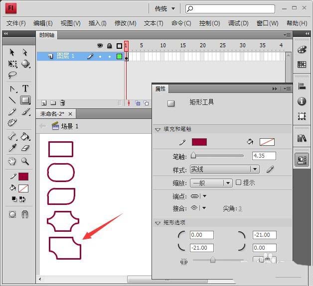 Flash中的矩形工具除了繪制常規的矩形,還可以通過矩形延伸出一些創意的圖形,我們只要利用屬性面板畫出其它形狀的矩形就可以了,下面我們就來看看詳細的教程。