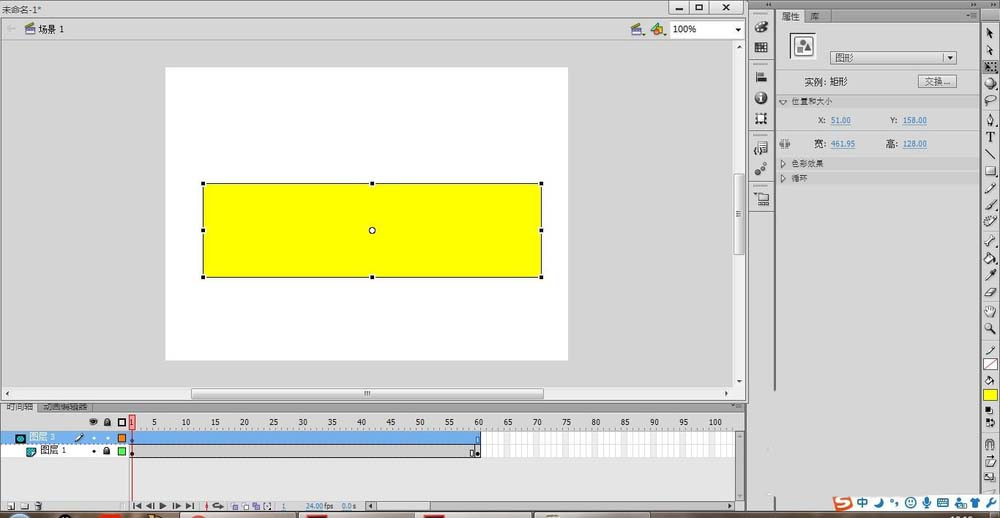 6、制作。在圖層2,選擇矩形工具繪制一個覆蓋文字的矩形大小。然后選中圖像后將它轉化為圖形元件。名稱為矩形,類型為圖形