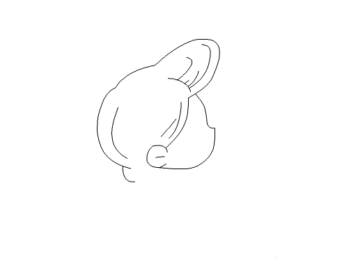 2、再使用鋼筆工具繪制出美女的面部,然后再在面部上畫出美女的耳朵,如圖所示: