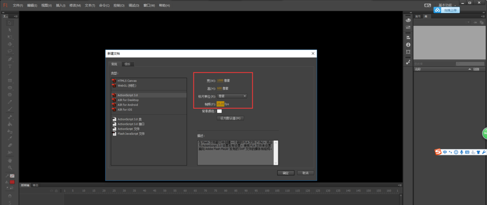 1、新建一個flash動畫項目,設置項目的大小為1000*600像素,幀率為25。