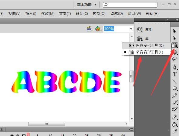 6、我們看到彩虹文字就出來了,還可以點擊右側工具欄上的漸變變形工具。對各個字符進行漸變的旋轉方向。