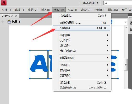 4、再次點擊修改,分離。文字就被分離成如圖所示的樣子。