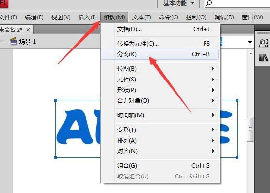 3、然后點擊修改菜單,點擊分離命令。文字就被分離成一個個的個體。