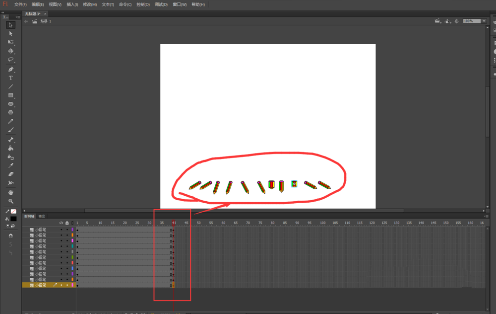 以上就是flash中制作鉛筆人掉落分離然后重組動畫的教程,希望大家喜歡,請繼續關注武林網。