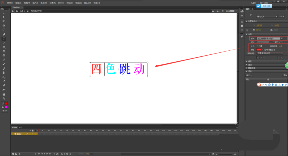flash中想要制作跳動(dòng)的彩色文字,該怎么制作彩色跳動(dòng)文字的動(dòng)畫(huà)效果呢?下面我們就來(lái)看看詳細(xì)的教程。