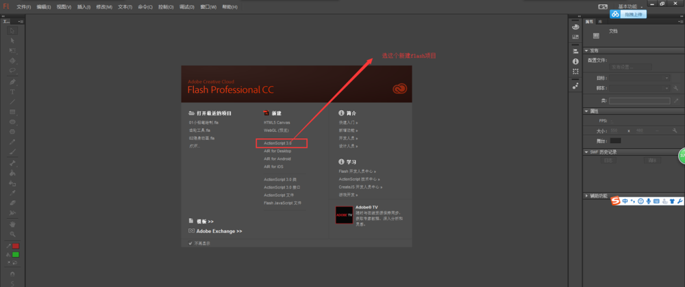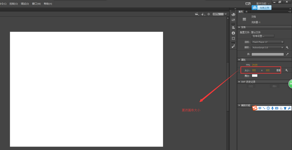 1、打開(kāi)flash,新建一個(gè)動(dòng)畫(huà)項(xiàng)目,并設(shè)置畫(huà)布的大小為800*600像素。