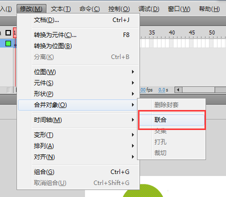 5、用選擇工具將重合的橢圓與矩形一起框選中,然后找到菜單欄中“修改”菜單,找到合并對象——聯(lián)合命令,將橢圓與矩形兩個圖形合并為一個圖形。