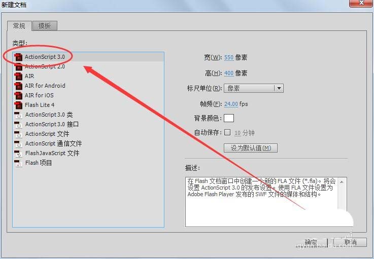 1、打開Flash軟件,新建一個ActionScript3.0文檔。