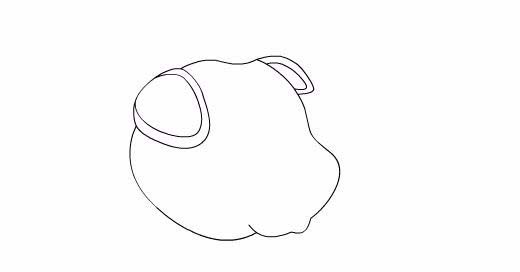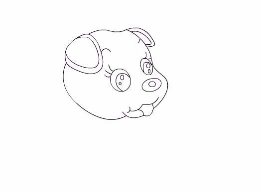 3、再在小狗的頭部輪廓上繪制出小狗的兩只耳朵,如圖所示: