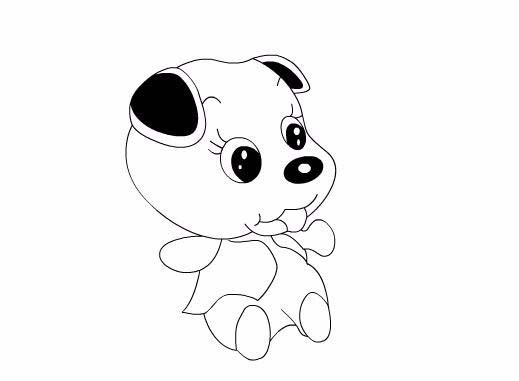 9、最后我們為小狗的耳朵、眼睛、鼻子填充上黑色,這樣我們的卡通小狗就繪制好了,如圖所示: