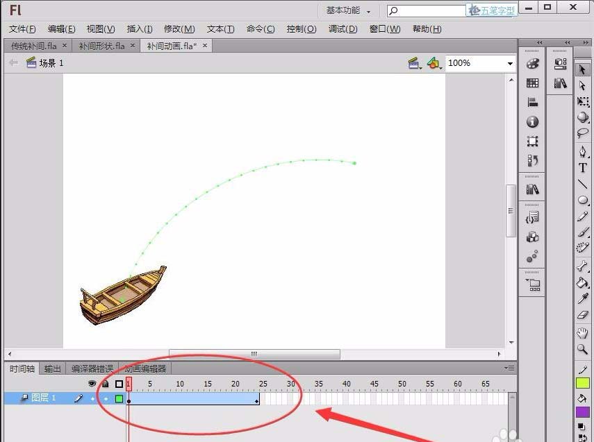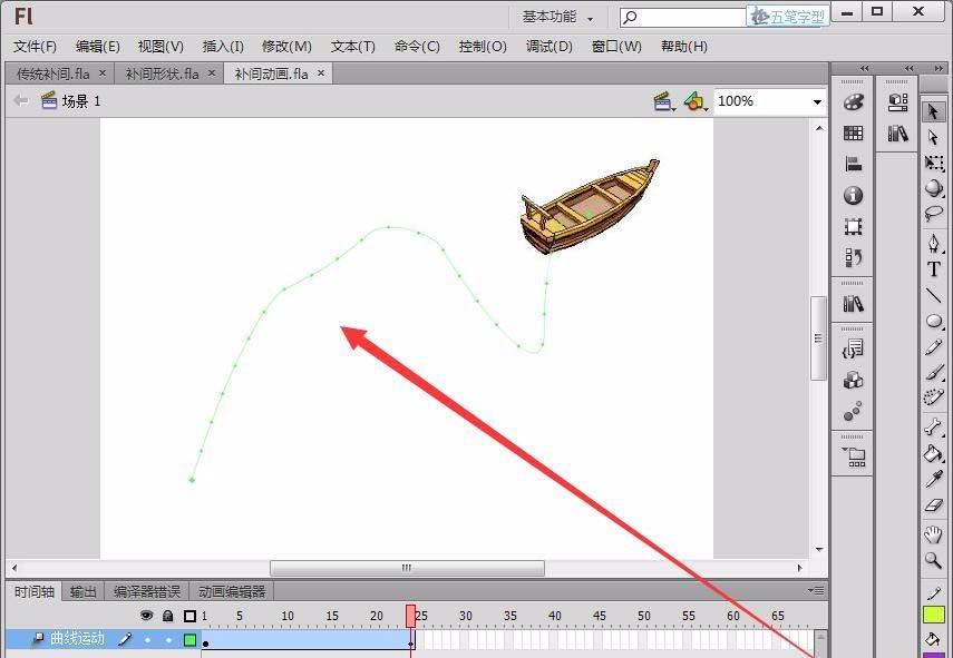 3、制作的補間動畫,可以直接設置運動軌跡。