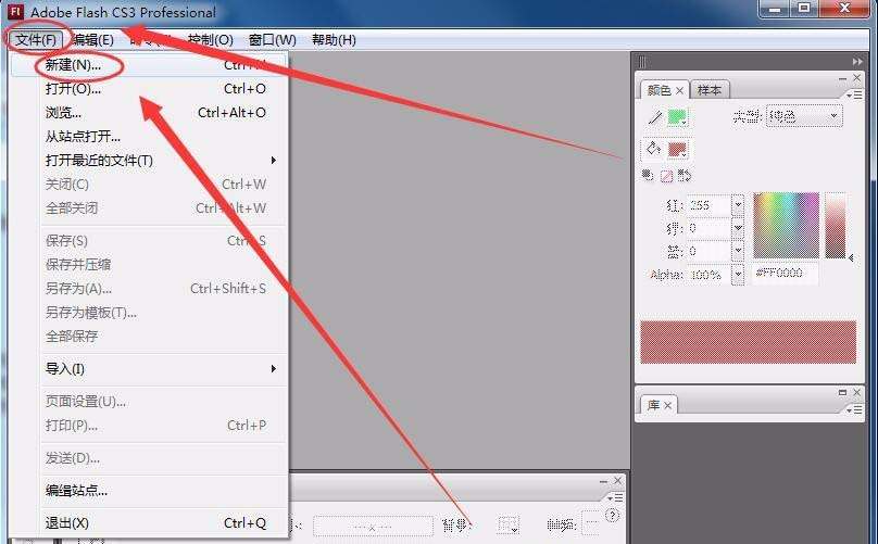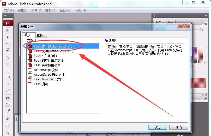 1、打開Flash CS3后,單擊文件--->新建,選擇ActionScript3.0選項(xiàng),創(chuàng)建一個(gè)空白文檔。