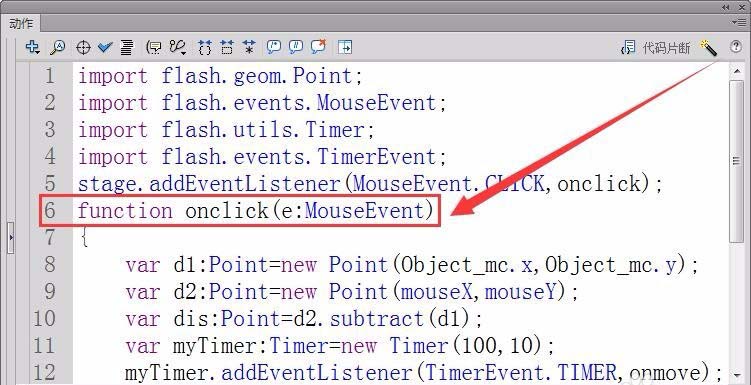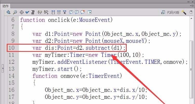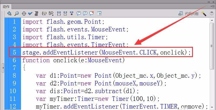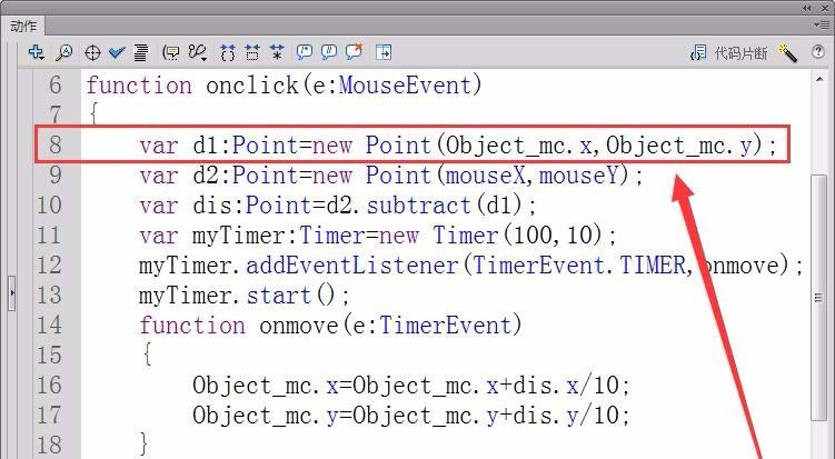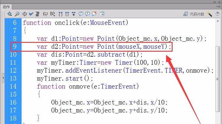 4、定義一個Point類的變量d1,用來表示對象Object_mc的X軸和Y軸坐標(biāo)。