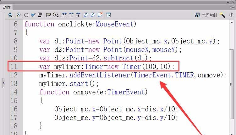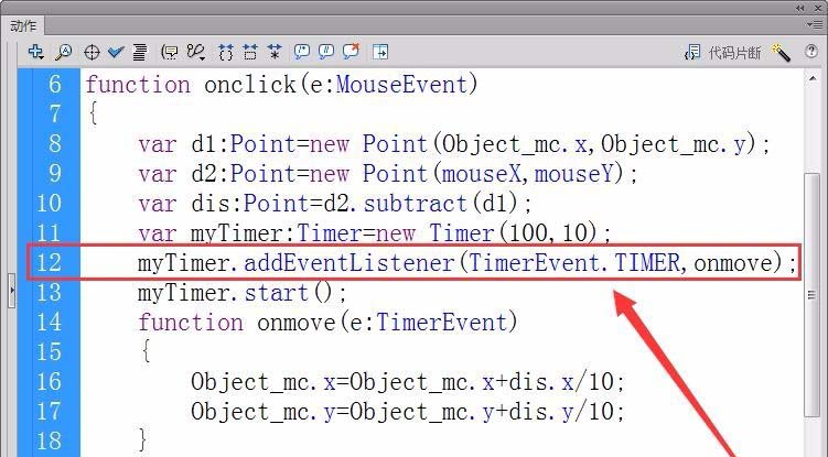 8、注冊對象myTimer的Timer事件偵聽器,接收者函數(shù)為onmove。