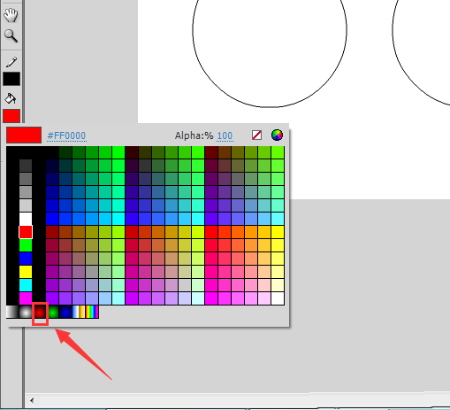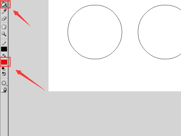 6、選擇紅色的漸變色我們在左側(cè)的圓形上填充上該漸變色,如圖所示: