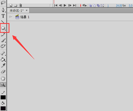 4、然后再在flash的工具箱內找到橢圓形工具,如圖所示: