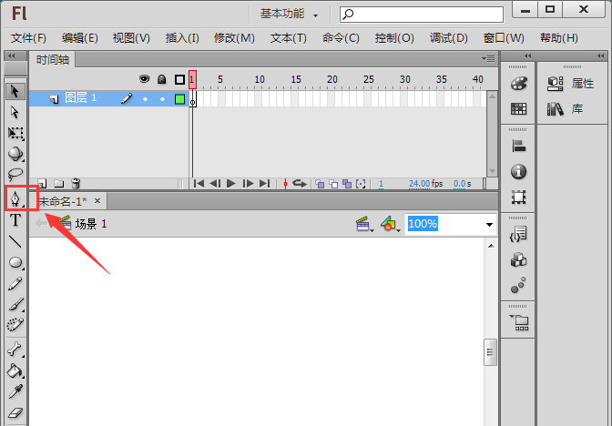 2、打開flash之后再在工具箱內找到鋼筆工具,如圖所示: