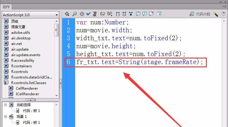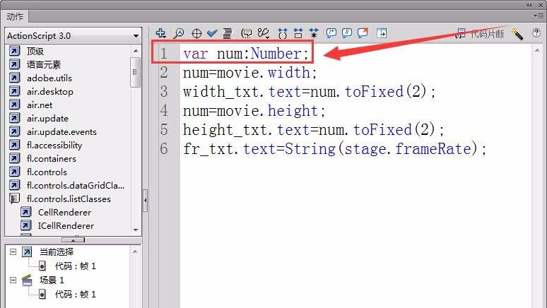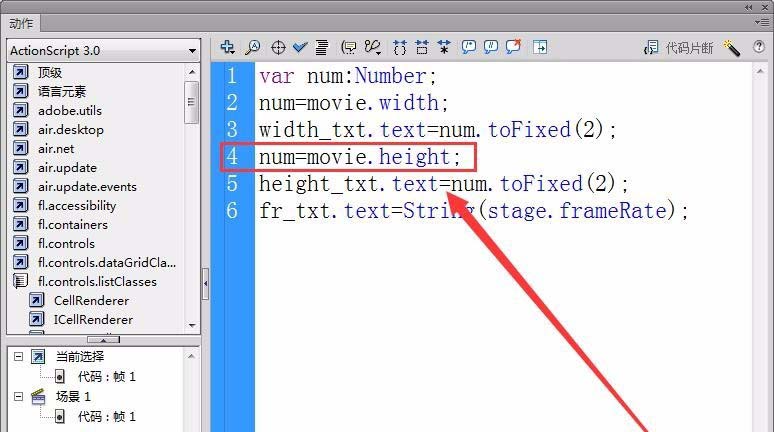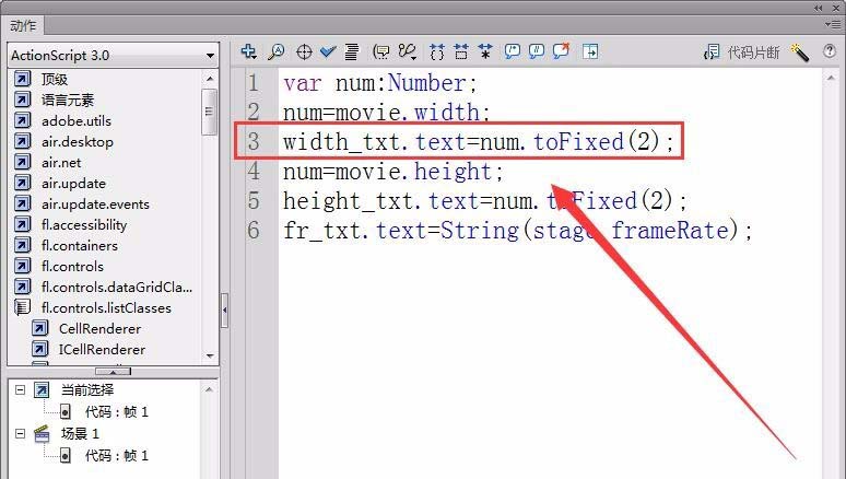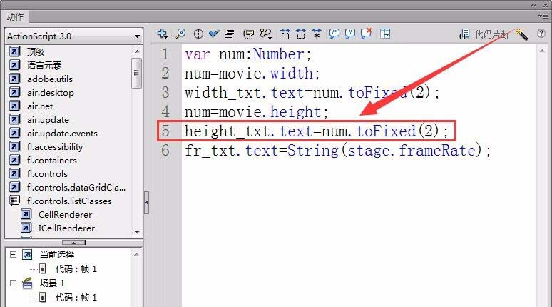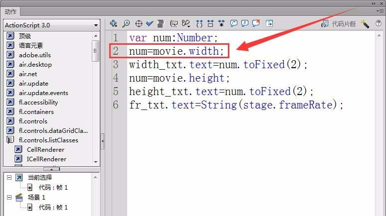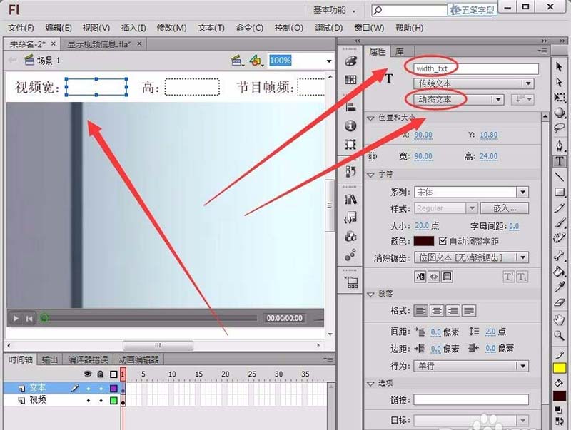 7、將視頻的寬輸出在舞臺中,輸出寬的文本框為“width_txt”。