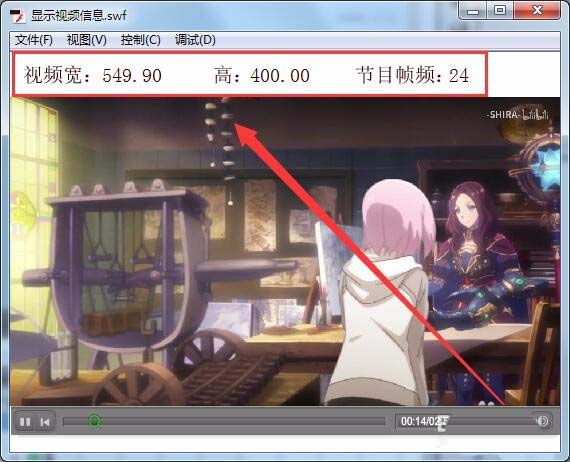 11、運行程序后,所播放視頻的寬、高和幀頻信息,在Flash舞臺上方正確顯示。