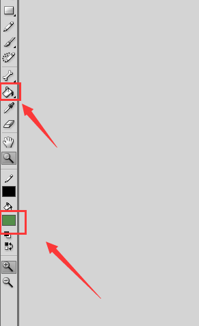 6、再在工具箱內找到顏料桶工具,并設置顏色為綠色,如圖所示: