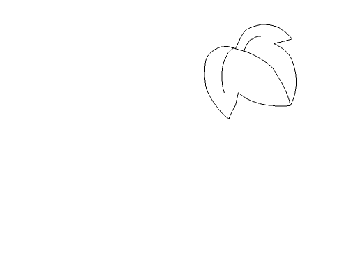 3、選擇鋼筆工具在舞臺上繪制出絲瓜的一片葉子,如圖所示: