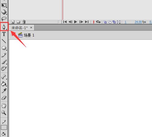 2、在打開的flash的操作界面里找到工具箱內的鋼筆工具,如圖所示: