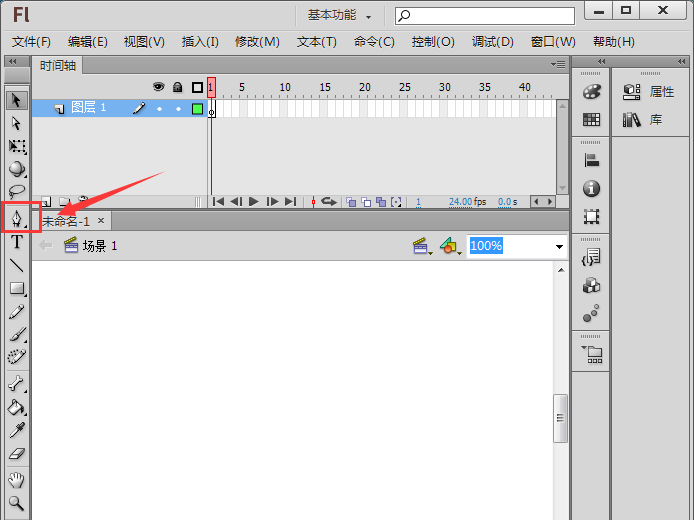 2、打開flash之后在工具箱內找到鋼筆工具,如圖所示: