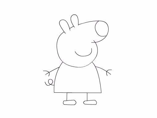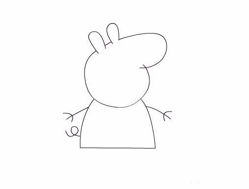 5、在頭部下面繪制出小豬佩奇的身體,在身體上繪制出小豬佩奇的兩只胳膊及尾巴,如圖所示: