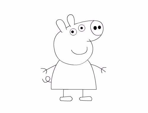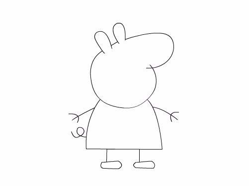 6、再在身體的下面畫(huà)出小豬佩奇的兩條腿及腳部,如圖所示:
