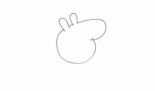 3、選擇鋼筆工具在舞臺(tái)上先繪制出小豬佩奇的兩只耳朵,如圖所示: