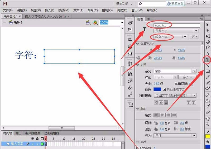 flash cs6舞臺(tái)中輸入字符后想要通過(guò)轉(zhuǎn)換按鈕轉(zhuǎn)化成Unicode碼,該怎么實(shí)現(xiàn)呢?下面我們就來(lái)看看詳細(xì)的教程。