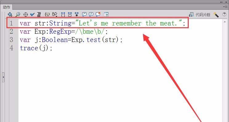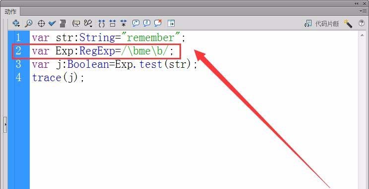 4、如何才能在Flash中正確搜索到英文單詞“me”呢?只須在正則表達(dá)式的首尾加入“/b”,如下圖所示。
