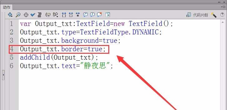 6、設置動態文本的邊框值為true,即顯示邊框。
