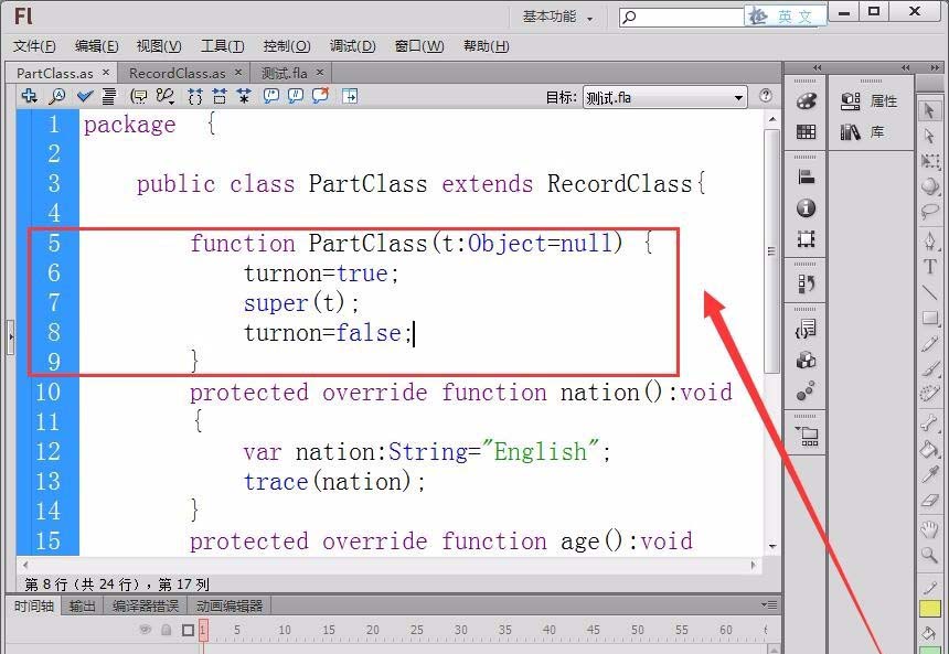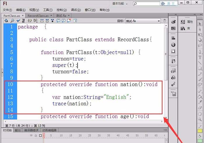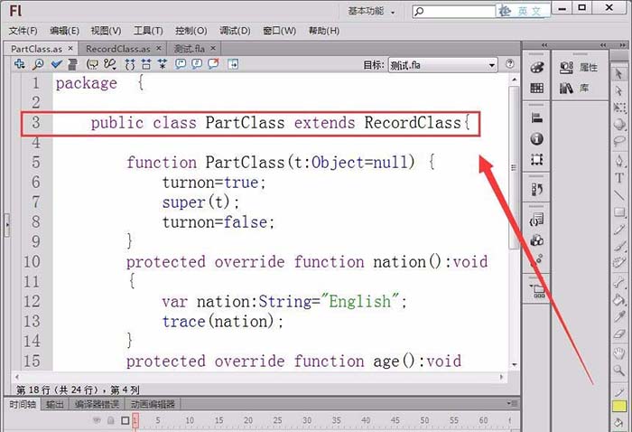 1、創(chuàng)建模板方法的子類文件PartClass.as,與模板方法類保存在同一文件夾中。